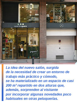 La idea del nuevo salón, surgida de la necesidad de crear un entorno de trabajo más práctico y cómodo, se ha materializado en un espacio de casi 200 m² repartido en dos alturas que, además, sorprenden al visitante por incorporar algunas novedades poco habituales en otras peluquerías.