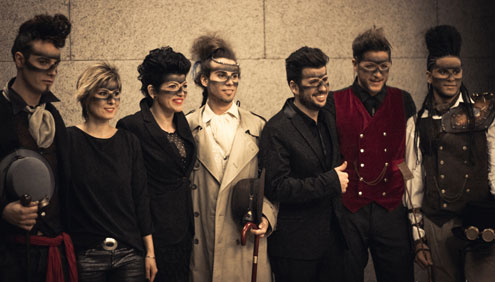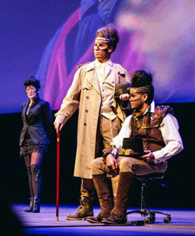 Las Jornadas continuaron con la actuación El futuro es ahora, durante la cual se presentó un show de recogidos masculinos con estética Steam Punk.