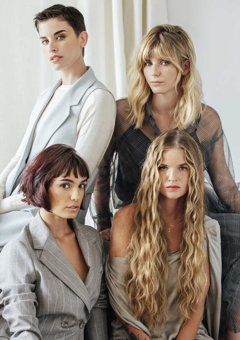 Un cabello extralargo, ya sea en liso con una ligera onda rota o con ondas de sirena, supersano y con un rubio en degradé con la raíz fundida. Este tipo de rubios, que alargan el verano, tan típicamente 'cheskianos', y que siempre se llevan, obtienen un efecto contouring en el rostro, que se consigue aclarando por mechones el contorno de la cara, los medios y las puntas. Con estos tonos preservamos el aspecto de pelo veraniego aclarado por el sol, clásico del cabello de los niños, muy natural y favorecedor. La raíz se muestra ligeramente más oscura, con un efecto fundido, que no requiere estar retocándolo constantemente: con dos veces al año es suficiente. En el corte vuelven las capas, para contornear el rostro y hacer que se muestre más claro y con más movimiento. Las capas, largas e invisibles, aportan movimiento y textura.