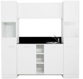 Muy funcional y práctico, incluye una pica redonda de acero inoxidable y grifería. La superficie de trabajo está protegida con cristal de seguridad de color negro o blanco.