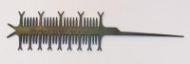 Es como un peine, en un estremo lleva un trozo de peine y en el otro 2 puntas.Entre el hueco de las dos puntas se impregna de producto y se desliza x el cabello, muy parecido a hacer mechas peine pero quedan más finitas..