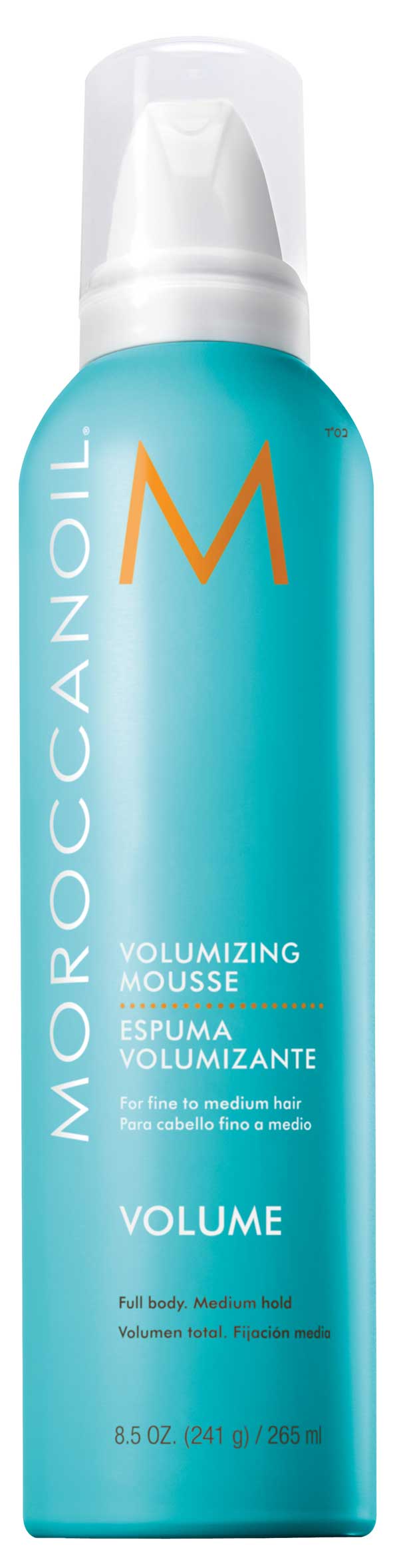 - Empezando a 12 cm de la raíz, se usan las manos para aplicar una cantidad generosa de la Espuma Voluminizadora Moroccanoil que nos aportará volumen y secará el cabello, evitando aplicar la espuma en las puntas.