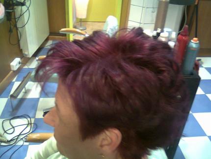 (zona superior) y yo, el flequillo lo hubiera dejado mas estirado y tieso estilo visera, para eso lo mejor es trabajar el flequillo lo primero de todo con el cepillo mas grande, y cuando se haya terminado todo el secado, darle aire desde abajo junto con laca, fijando así las raices, despues modelar de nuevo las puntas de ese flequillo con el cepillo grande de nuevo, así conseguirás un efecto (a mi entender) mas elegante, pulido y bonito.