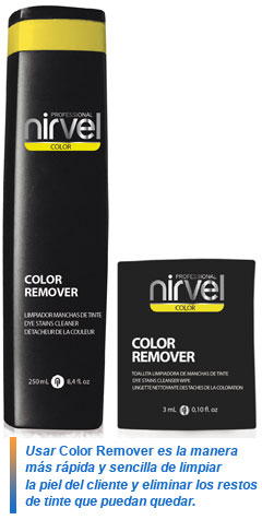 Nirvel Professional presenta su nuevo producto, Color Remover, un efectivo borrador de manchas de tinte en la piel que actúa de manera inmediata. Además, para mayor comodidad, está disponible en dos formatos: envase de líquido de 250 ml o prácticos sachets con toallita monouso.