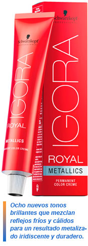 La línea Igora Royal, relanzada en 2013 por Schwarzkopf Professional para lograr un color real en alta definición, añade ahora a su gama de colores nuevos tonos metálicos para crear looks de tendencia en la melena. Se trata de ocho nuevos tonos brillantes con una iridiscencia única, que agregan reflejos cálidos y fríos en contraste para lograr un acabado metalizado pulido, con un brillo luminoso y color duradero.