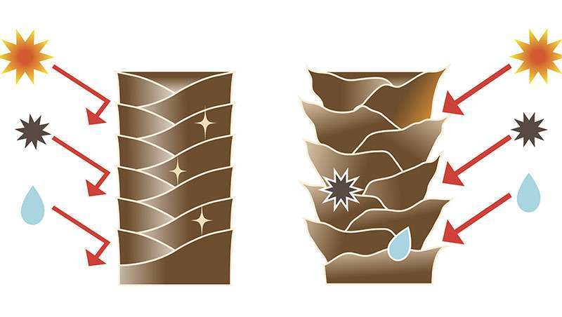 - La Cutícula, cuyo espesor es de 0.5 micras, formada por células planas y alargadas que se superponen entre ellas a manera de los pétalos de las rosas.