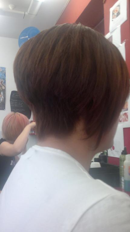 Divae a mi tambien me gusta pero voy a explicar el tema, la chica llevaba el pelo cortito, ahora se lo está dejando largo, quiere conseguir una media melena bob, me ha pedido que le vaya rebajando la nuca para ir dejando largo el pelo, y eso hice, vacié la nuca bastante e hice unas capas bajas para ir dando forma a lo que queremos llegar a conseguir, besos.