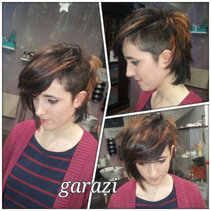 Ayer por la tarde mi companera de trabajo decidio desprenderse de su larga melena me dio dos pautas, raparse un lateral y que fuera un look loco- despeinado. El color lo dejamos para mas adelante, se admiten sugerencias de todo tipo ;)