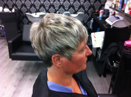 el corte bien.pero ese tono de mechas no le faborece nada,y la nuca negra,tampoco,es mi opinion.