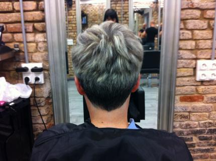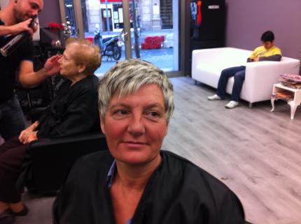 La pena es que no le he sacado antes, tenía en pelo por los hombros casi y canoso, con unas mechas amarillentas horrible.
