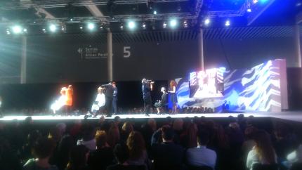 Os pongo algunas fotos del evento y a modo personal algunas imagenes de las tendencias que presentaron Tony & Guy , por cierto en sus tecnicas de temporada utilizaron mucho las planchas y en todos los cortes tijeras del 7 , muy lejos de los 5´5 que utilizaban en el pasado ,, dejare algunas fotos del Show aunque algunas con la pantalla gigante ya que el escenario estaba a unos 10-12 metros......