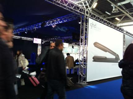 Mucho Cristal, suelos porcelanicos. Ojo, que también habian stands sencillos modulares de los que vemos en cualquier feria de ciudad, estos curiosamente cogidos para las revistas mas prestigiosas de peluquería.