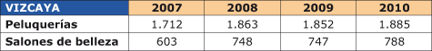Vizcaya es una de las provincias españolas con mayor número de establecimientos de peluquería y estética por habitante. Pese a la crisis, y que en 2009 se produjo una reducción del número de nuevos establecimientos en el sector, el ritmo de creación de nuevas empresas no ha dejado de crecer. En lo que llevamos de año, el número de nuevas peluquerías ha crecido un 10% respecto al año pasado, mientras que los centros de belleza se han multiplicado por 30.