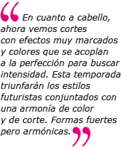 C.V.: Estamos viendo diferentes estilos, pero en cuanto a cabello, vemos cortes con efectos muy marcados y colores que se acoplan a la perfección para buscar intensidad.