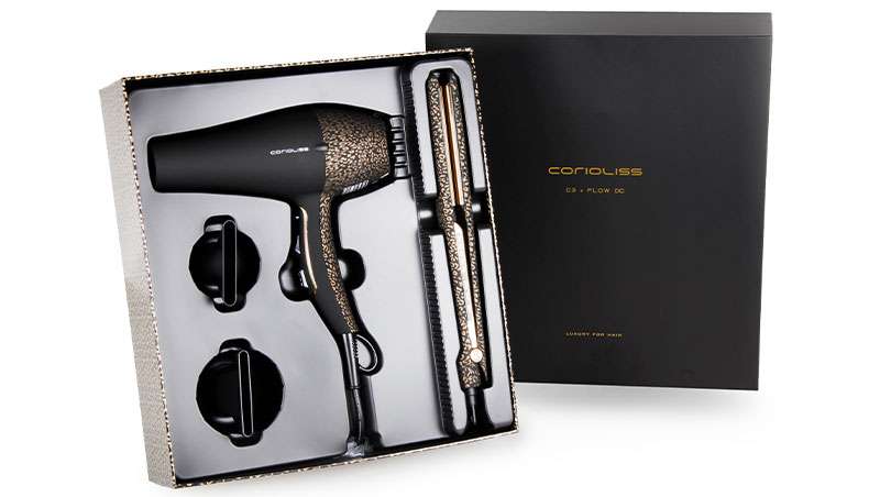 Un exclusivo kit de Corioliss, ideal para regalar, que contiene la plancha C3 y el secador Flow DC, dos herramientas profesionales que te conectan con el peinado inteligente.