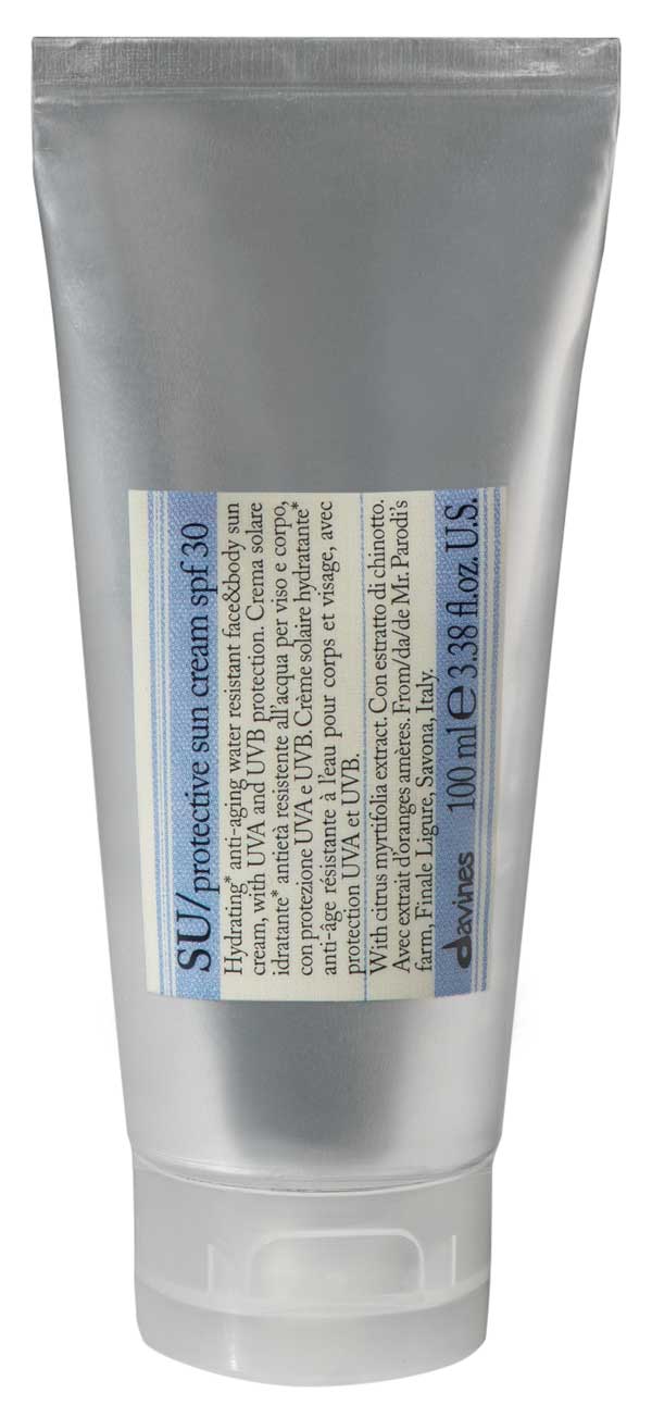 - Su Protective Sun Cream Spf30. Crema solar formulada para proteger de los rayos UVA/UVB, prevenir la deshidratación de la piel y proteger contra la aparición de los signos de envejecimiento.