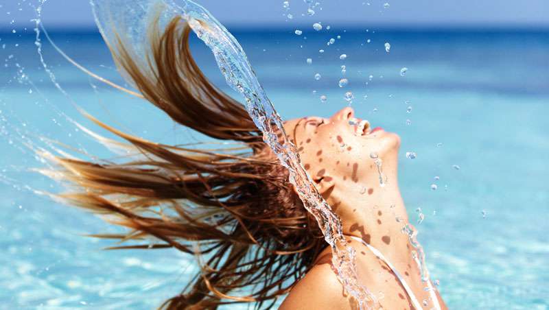 El agua de la playa y la piscina contiene elementos que, al quedar en el cabello tras un baño, pueden provocarle daños importantes. El salitre del mar, por ejemplo, actúa como un cristal magnificador que aumenta el efecto perjudicial del sol, resecando el cabello y volviéndolo frágil y áspero. Por su parte, el cloro de la piscina es un químico bastante agresivo, que además de resecar el cabello suele afectar a su tono, tornando verdes los colores claros como el rubio o el blanco.