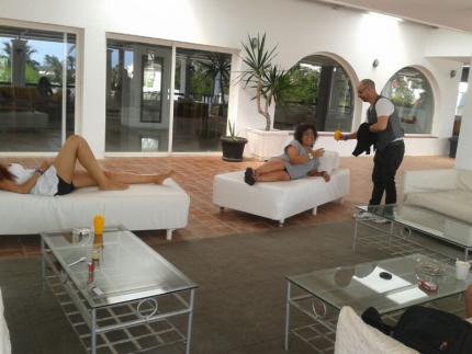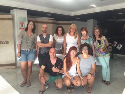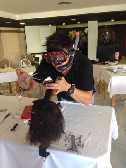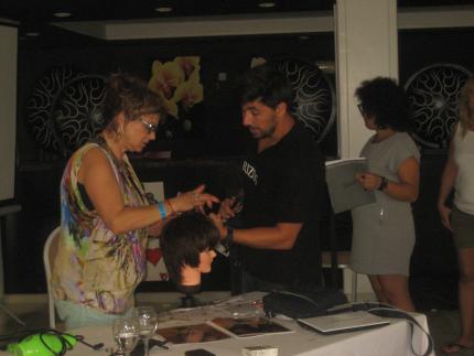 Y como no… de vuelta al hotel a seguir tomando copas y celebrando que estas en Ibiza… pero a la mañana siguiente… a las 9/00 desayunando y 9/30 ya estamos de formación las dos técnica de corte que nos faltaron….