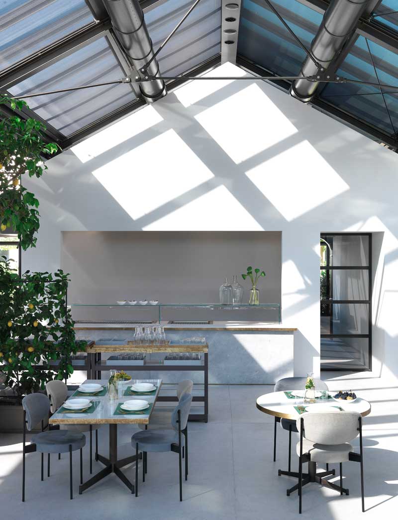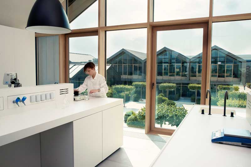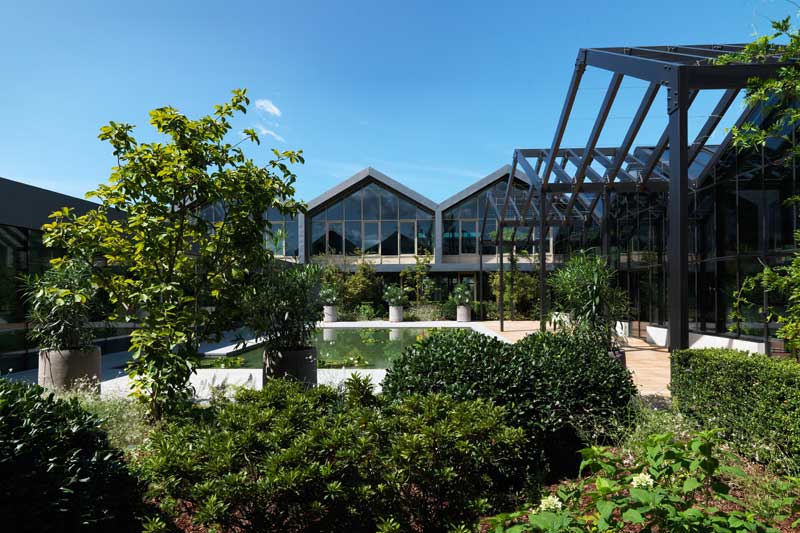 Erigido sobre una superficie de 77.000 m2 en Parma (Italia), el complejo ocupa alrededor de 11.000 m2 (equivalente al 20% del área total) e incluye espacios dedicados a las oficinas, a la formación, al laboratorio de Investigación y Desarrollo, a la planta de producción, al almacén, además de un gran invernadero central que acoge el restaurante y un espacio de co-working.