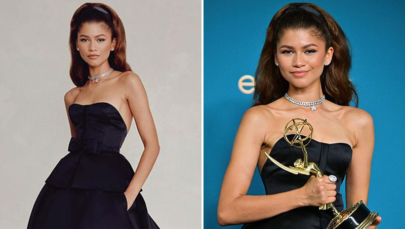 Cruzamos ahora el charco y nos fijamos en el look que llevó la estadounidense Zendaya en la gala de los Premios Emmy 2022, donde recibió la estatuilla a Mejor Actriz Principal en una Serie Dramática por su papel en la exitosa serie Euphoria. Sin duda, Zendaya triunfó también sobre la alfombra roja con su vestido de satén negro y escote corazón, de la firma Valentino.