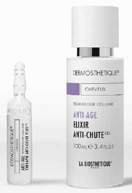La línea Dermosthetique Anti-Age combate el envejecimiento prematuro a dos niveles y gracias a los extractos vegetales altamente eficaces. Las células madre de manzana frenan el envejecimiento celular y las moléculas energéticas, tales como uva de oso, previenen la glicación en el tejido del cuero cabelludo y de la piel. Además, los nuevos productos, ya mencionados, contienen otro complejo más, testado en estudios clínicos, con un polifenol estabilizado de madera de larix, que actúa directamente sobre las células madre del folículo piloso.