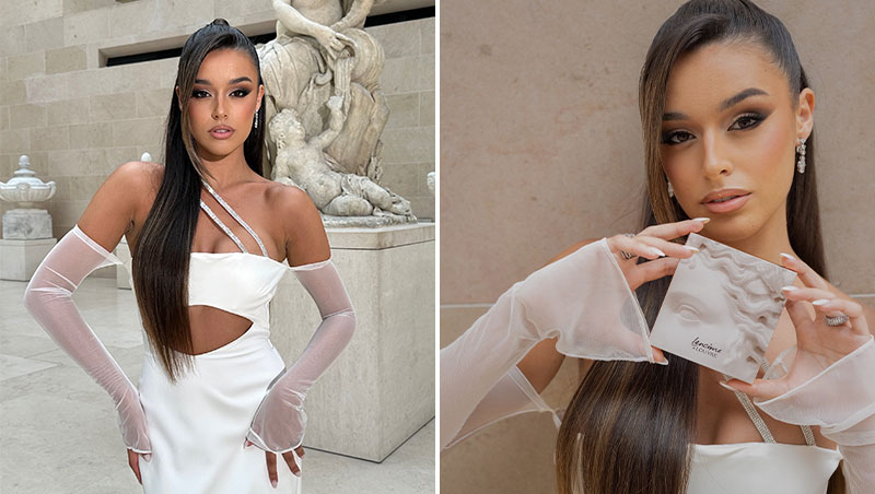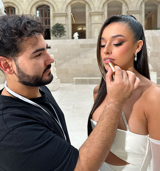 "Diseñé este look de Marta para un momento único y mágico: el evento de Lancôme Internacional en el Museo Louvre de París. Fue una experiencia increíble estar rodeados de todas aquellas obras de arte y disfrutarlas a puerta cerrada, en el museo más visitado de todo el mundo. Por ello, mi inspiración fue realizar un makeup y un peinado muy pulido y limpio que resaltase la belleza de Marta, y que transmitiera elegancia y sofisticación entre las esculturas y obras del museo. El cabello lo dejé muy liso, con un semirrecogido que justo estiraba la zona de los ojos para que se viera una mirada más rasgada y potenciara el maquillaje de efecto foxy eyes".