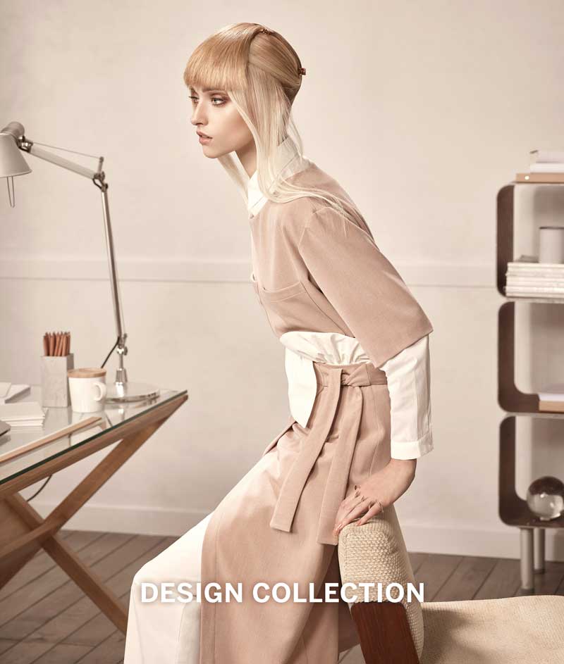 La colección Design de Revlon Professional® realza la verdad de lo elemental, la desnudez de lo ornamental, cualidades que interpreta en cabellos de diferentes largos, siempre muy bien estructurados, donde triunfa la línea recta y el esplendor geométrico para expresar la simplicidad minimalista del presente.
