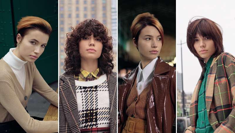 In Check aporta un giro divertido al tradicionalismo con patrones desconjuntados, rizos y tonos morenos, mientras que Retro Modern muestra un cabello corto con tonos rojos oxidados que crean gran impacto e interés.