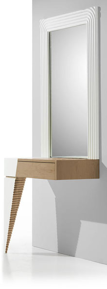 - Tocador Dover: sencillez y diseño para un tocador minimalista pero funcional. Incluye gran espejo y cajón para utensilios sobre una sola pata.