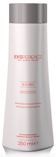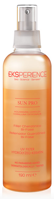 Los ingredientes de Eksperience Sun Pro ayudan a reparar el cabello de los daños producidos por el sol y los agentes atmosféricos. La gama posee componentes con filtros UV y antioxidantes que nutren y protegen de las radiaciones solares y todo tipo de agresiones externas.