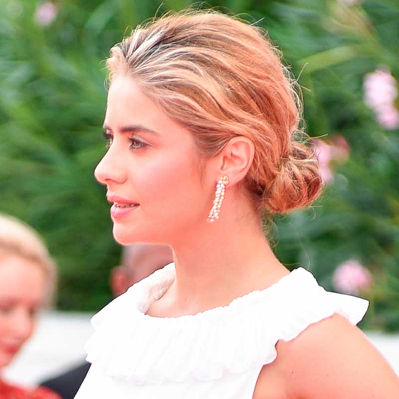 La influencer alemana Caroline Daur llevó un recogido estructurado y definido que exhibió en la alfombra roja de la película “J’accuse”. De nuevo, un moño bajo con raya en medio, pero esta vez anudado con el propio pelo a modo de coletero. Sin duda un toque muy chic cuyo aspecto sedoso lo dio la crema de peinado Red Carpet.