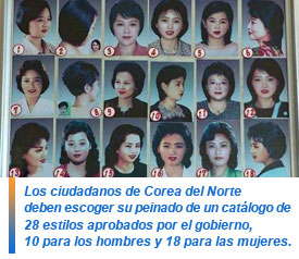 Esta noticia ha recordado que Corea del Norte, bajo un régimen comunista militar muy estricto, incluso controla los cortes de pelo de sus ciudadanos. Todo aquel que acuda a una peluquería para un cambio de peinado debe escoger de entre un catálogo de 28 estilos aprobados por el gobierno, 10 para los hombres y 18 para las mujeres.