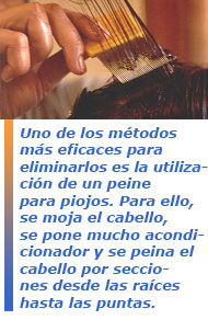 Si aún así no se ven piojos, se puede usar un método más seguro, que es utilizando un peine para piojos. Para ello, se moja el cabello, se pone mucho acondicionador y se peina el cabello por secciones desde las raíces hasta las puntas. A cada paso del peine, se sacude el peine dentro de un bol. Si existen piojos, se podrán ver en el peine o en el bol.