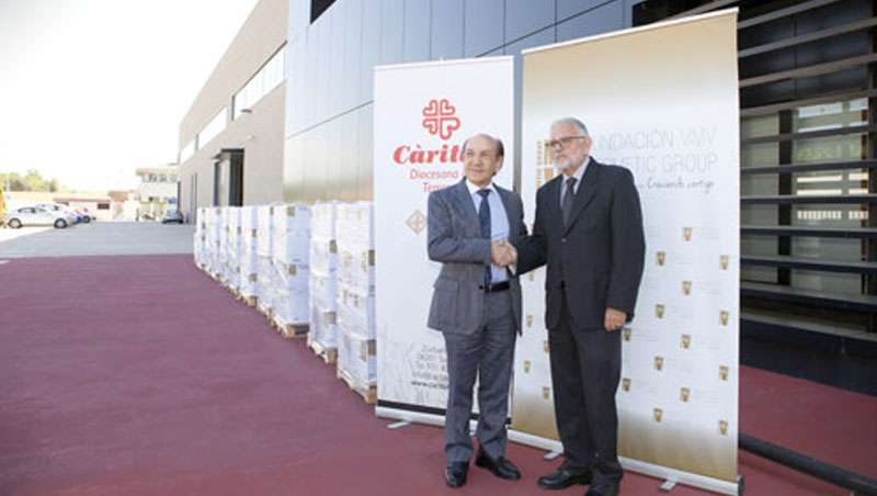 La entrega simbólica de los palés se ha producido en la sede que la empresa tiene en Llicà de Vall, y el director general de de la diócesis de Terrassa no ha querido finalizar el acto sin agradecer de nuevo a VMV Cosmetic Group y a su presidente el apoyo en su lucha para el desarrollo de las personas más desfavorecidas.