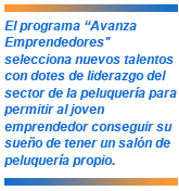 Diseñado y creado por easyCut! Peluquerías y Schwarzkopf Professional, el programa "Avanza Emprendedores" selecciona nuevos talentos con dotes de liderazgo del sector de la peluquería para permitir al joven emprendedor conseguir su sueño de tener un salón de peluquería propio. Para ello, los elegidos cuentan con la ayuda y los consejos de dos expertos mentores de ambas firmas, con una plan de carrera adaptado y personalizado.