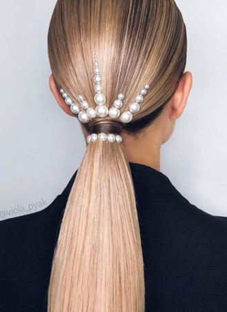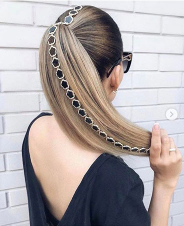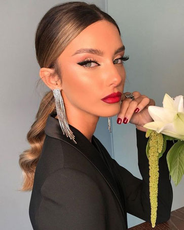 Las ondas van a ser las reinas de estas fiestas, pero una raya bien centrada y craneal recogida en coleta baja, siempre es un gran look elegante y sofisticado.