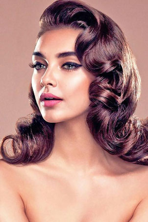 Al peinarla, creemos que es muy importante romper con las ondas tradicionales y conseguir un efecto de ondas muy rotas, para un look desenfadado. Estas ondas las mezclamos con un efecto muy engominado hacia atrás, combinando de este modo diferentes tipos de texturas: engominado hacia atrás con la raíz muy pegada y la onda muy rota de medios a puntas.