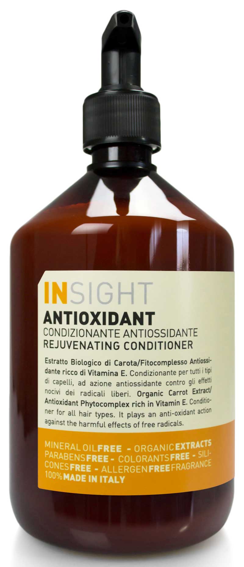Formulada a base de extracto biológico de zanahoria, rico en Betacaroteno, que protege el cabello de los efectos nocivos de los radicales libres, Antioxidant refleja en el cabello todos los beneficios de su propio nombre, frenando la oxidación y rejuveneciéndolo.