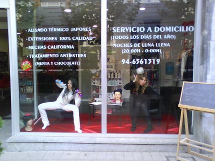 He cogido 2 chicas monas,peinados llamativos y ala,a posar en el escaparate como si fueran maniquíes.