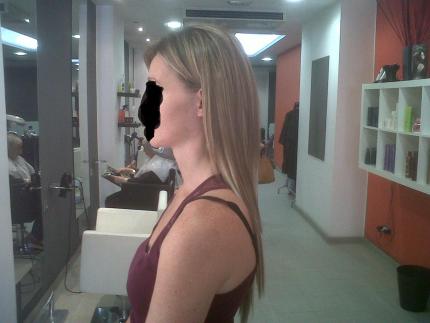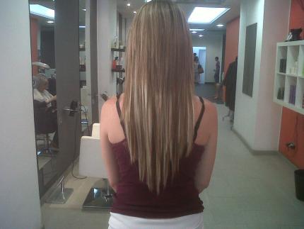 La clienta, como habéis dicho, quería exactamente ese efecto, mechas mas claras y mas marcadas en la extensión. Su cabello no lo quiere tocar.