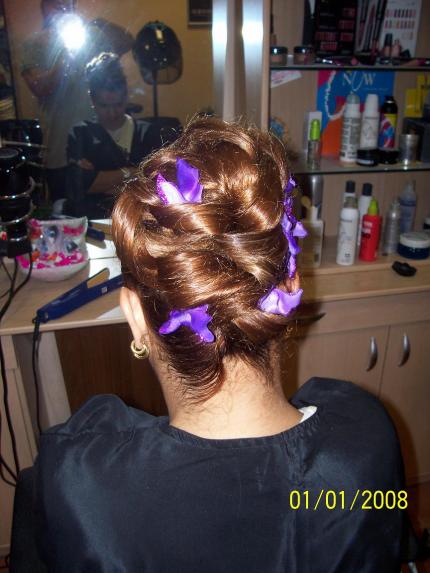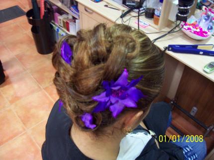 me encantan las flores, donde las has cosenguido?? A mi elmoño me gusta mucho, el que comenta que es orteillo tiene que saber que a veces tenemos que hacer moños que no nos gustan, pero que la clienta se va contentisima y con eso vale ma´s que nada, que por cierto no es el caso