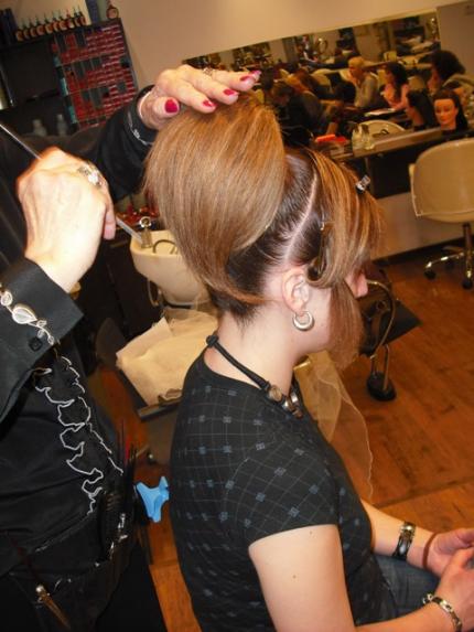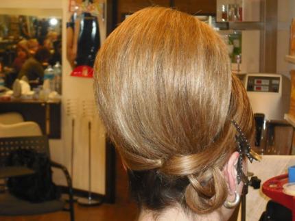 en este caso la modelo llevaba un cabello muy desfilado y no lo suficientemente largo,pero si su largura fuese la adecuada este recogido tiene un acabado precioso.