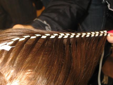 se van trenzando los mechones con sumo cuidado de no retorcer el lazo.