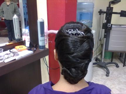 es muy sencillo separas la zona de arriba, de las sienes hasta la coonilla en triangulo la separas en dos y las cruzas sin forzar el cabello,despues es ir cruzando mechones en sentido descendente y ayudandote con los dedos colocas cada cruce debajo del anterior y la sujetas con clips,al llegar al final le puedes dar el acabado que quieras yo en este caso le hice un cordon grueso.