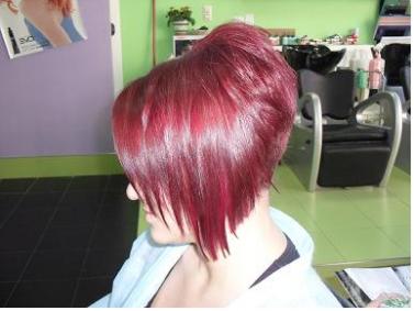 lleva mechones interiores en fucsia que en esa foto no se aprecian bien, pero estaban en fucsia fosforito precioso. La nuca esta totalmente rapada.