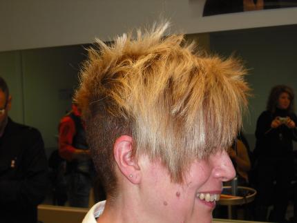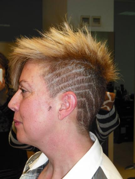 la idea del corte me gusta, pero para mi demasiado extremo. no hubiera hecho la parte rapada tan corta. Pero pa gustos los colores.
