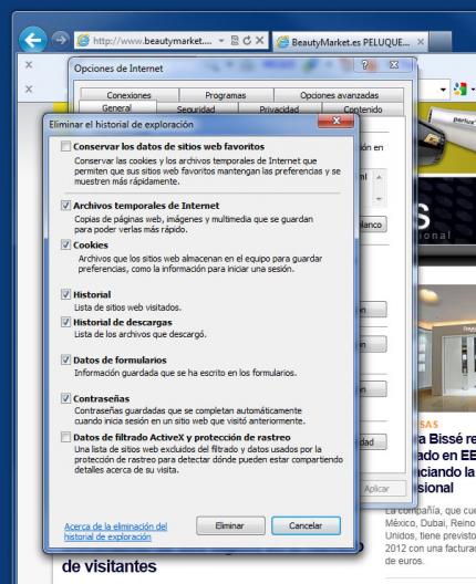 ¿como se borra el historial y cookies de internet explorer?