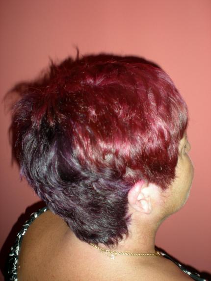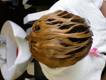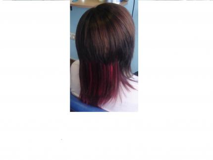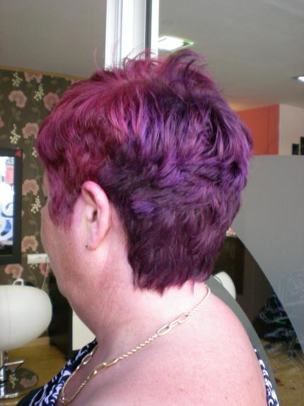 Gracias, este es muy sencillo, porque a la chica le corto el pelo desde hace un montón de tiempo, y el color también se lo pongo siempre igual porque le encanta. En la foto no se aprecia muy bien el brillo que es increíble. Me da pena no tener más fotos porque hice muchísimos trabajos con elumen. Yo misma llevé el verde que me encanta, y el fucsia. No sé si tengo alguna foto, buscaré en el baul de los recuerdos, je,je. Por cierto, aún no he probado el amarillo, si tenéis algún trabajillo con ese color ponedlo, porque debe ser alucinante.