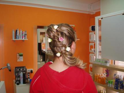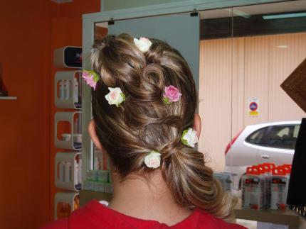 Sobre todo el recogido es muy original, está bonito, ¿las flores?, partiendo de la base que es lo que trae el cliente, ahí estamos nosotros de hacerle o no caso, las flores en si son preciosas (rosas de pitiminí creo), yo las hubiera puesto quizá las 11 todas juntas, pq separadas nunca me han gustado, hacen un efecto un poco antiestético y dá la sensación que se tapan cosas que no se deben ver (orquillas), de todas formas es un recogido romántico muy bonito. Enhorabuena Chispa.