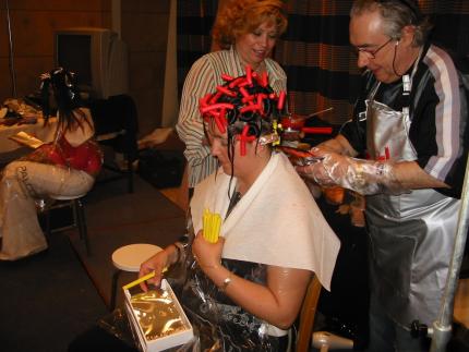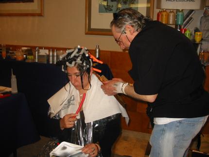 Como veras he cambiado mi imagen , estoy montando con rolls , separando mechas que seran teñidas con color y enrrolladas con papel de plata , poniendoles cuando se enrulen deco . Me tengo que marchar a cenar , mañana continuo.